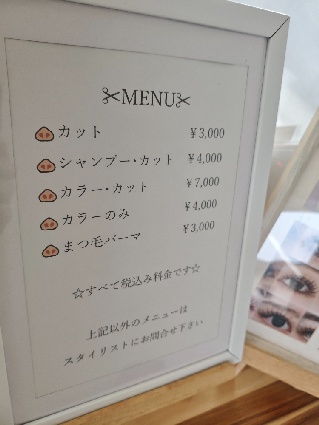 | カット (シャンプー無し) | ¥3,000 (税込) |